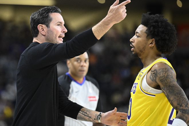 拉拉维亚和克内克特也是让人绝望。拉拉维亚上场关键时刻有关键得分,这场比赛全场比赛打铁,攻守都无法给到任何带动。克内克特也是拉胯,不仅进攻端独,三分还铁,防守也不行,这两个人基本上很难给到期待了,可能偶尔发挥一下。只是现在湖人能用的人还是太少了,估计后续出场时间还是有,这对于湖人不是什么好的保障。