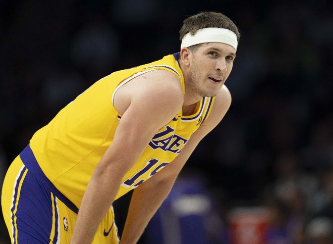 海斯在内线也不行,防守端被对手随便突破,根本无法保护篮下。范德彪上场后就和无头苍蝇一样,进攻端没得分能力,防守端防不住,失误还多,他的作用已经越来越低了。拉拉维亚现在已经连续崩盘了,特别是三分命中率,最近五场好像就进了两个,外加防守侵略性也在迷失,他已经很难找回以前那种统治力了,这对于湖人是遗憾。