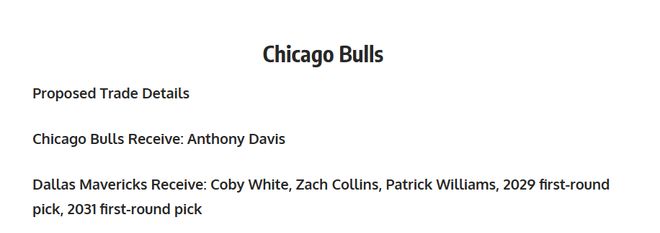 独行侠得到:维金斯、特里・罗齐尔、尼古拉・约维奇、2029 年首轮签、2030 年首轮签(互换权)、2031 年首轮签